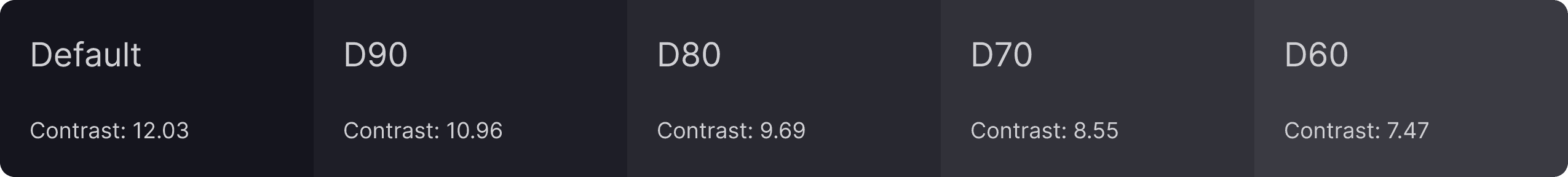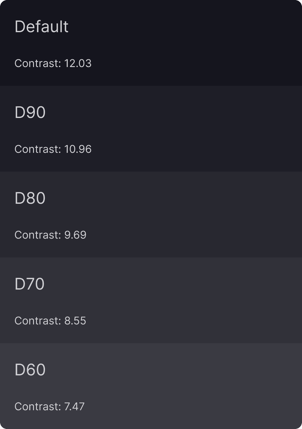 Spectrum Design System Darker | #080808 | 0 | 3 | No | #EAEAEA | 16.64 |